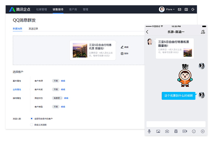 依据标签、画像属性筛选,针对性群发消息触达客户