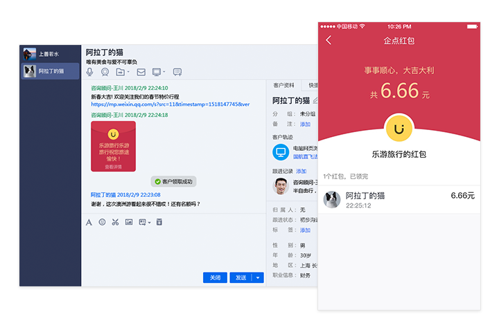 线上销售过程中,把握时机向客户发放企业预置好的优惠券,为新客成功转化成付费用户推波助澜。独有QQ卡券发放,支持QQ卡包查找。