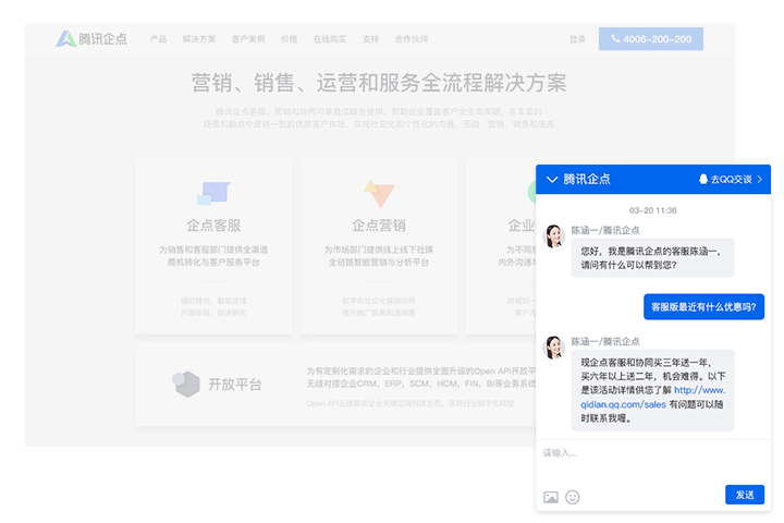 已服务互联网用户近20年,最高同时在线用户接近3亿,基于QQ底层消息架构的腾讯企点,能够充分保障您和客户之间沟通的消息传送质量,不会因为消息丢失导致客户流失。