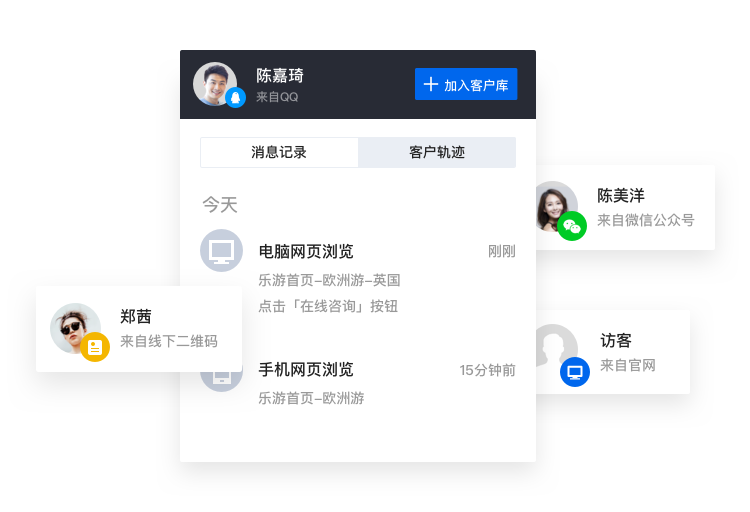 企业通常只能转化近期意向访客,缺少有效手段转化中远期意向访客。企点客服让企业和访客建立QQ好友关系,持续沟通减少流失,让各类意向访客均有机会转化。