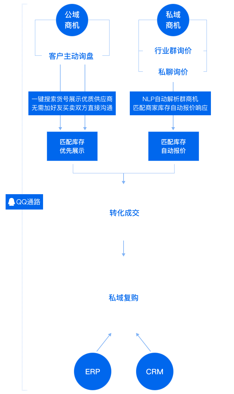自动抓取QQ行业群内的求购商机,NLP解析商机数量超千万/天。自动匹配库存后,智能匹配上的商机支持自动发送报价单,实现售前完全自动化,助力企业交易效率显著提升。